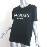 Balmain 3 Button Logo T-Shirt Black Cotton Size Large Short Sleeve Top NEW