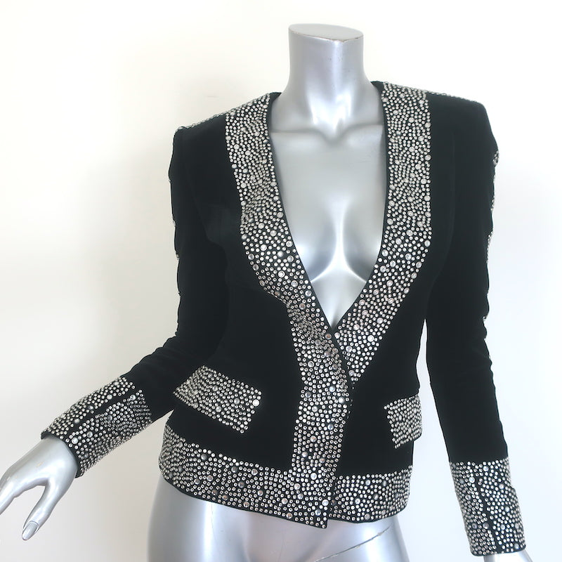 Balmain Crystal-Embellished Velvet Blazer Black Size 34 V-Neck Jacket