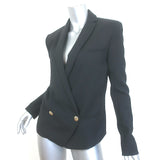 Balmain Double Breasted Blazer Jacket Black Stretch Wool Size 38