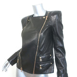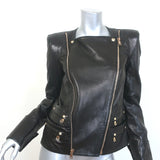 Balmain Double-Zip Leather Biker Jacket Black Size 42