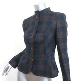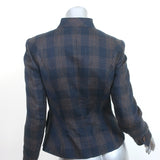 Brooks Brothers Checked Button Front Jacket Navy Linen-Blend Size 4