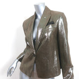 Brunello Cucinelli Metallic Leather Blazer Gold Size 42 One-Button Jacket