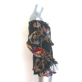 Giambattista Valli Sequined Yoke Blouse Black Floral Print Silk Size 4...