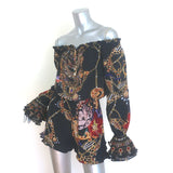 Camilla Drop Shoulder Frill Romper Black Embellished Silk Size Extra Small NEW