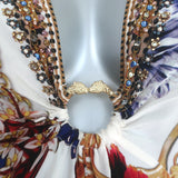 Camilla Reign Supreme Short Kaftan with Hardware Cream Printed Silk One Size NEW