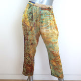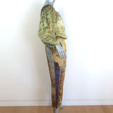 Carmen Molina Matching Blouse & Pants Set Yellow Printed Silk Size Small/Medium