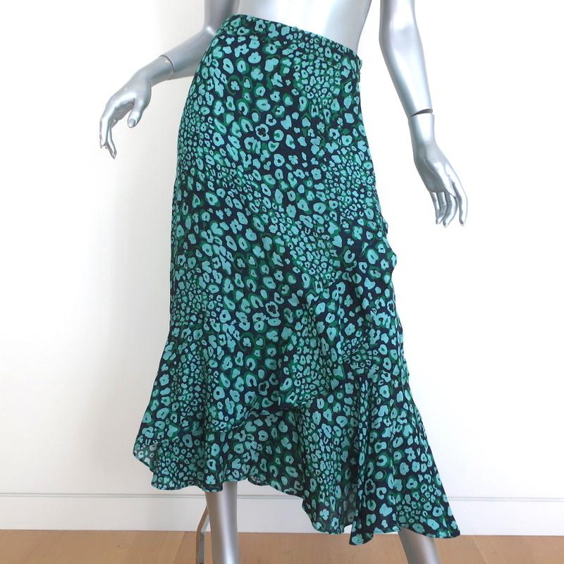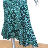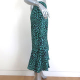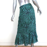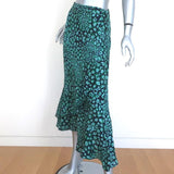 CEFINN Ruffle Hem Midi Skirt Maria Mint Leopard Print Silk-Blend Size US 2