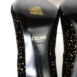 Celine Sharp Pumps Black/Gold Glitter Dots Velvet Size 41 Pointed Toe Heels NEW