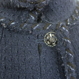 Chanel 08A CC Star Button Fringed Metallic-Trim Tweed Jacket Navy Wool Size 40
