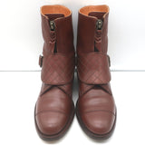 Chanel 12A CC-Embroidered Cap Toe Quilted Ankle Boots Brown Leather Size 38
