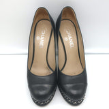 Pre-loved. Good condition. Wear and tear on heels above pins. Light wear on platforms. Tiny scratches in leather on toes. Small, faint scuffs throughout. Insoles are smudged and worn. Comes with box and dustbag. Retails for $975!