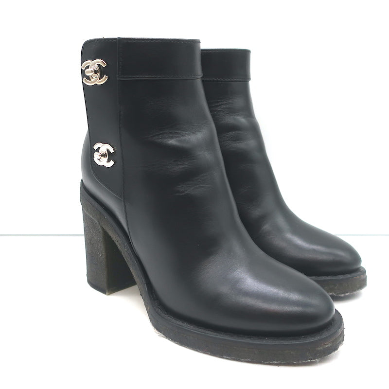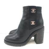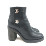 Chanel 18K CC Turn Lock Ankle Boots Black Leather Size 35.5