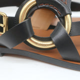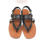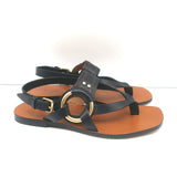 Chloe Demi Flat Slingback Thong Sandals Black Leather Size 38