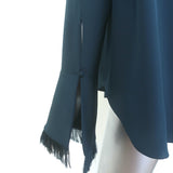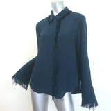 Chloe Fringe-Trimmed Button Down Shirt Dark Teal Size 42 Long Sleeve Blouse