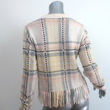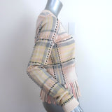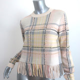 Chloe Fringed Plaid Sweater Cream Wool-Cashmere Size Small