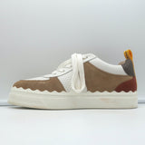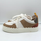 See by Chloe Lauren Low Top Sneakers White Leather & Brown Suede Size 39