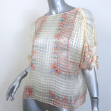 Chloe Ruched-Sleeve Blouse Ivory Printed Windowpane Check Silk Size 36