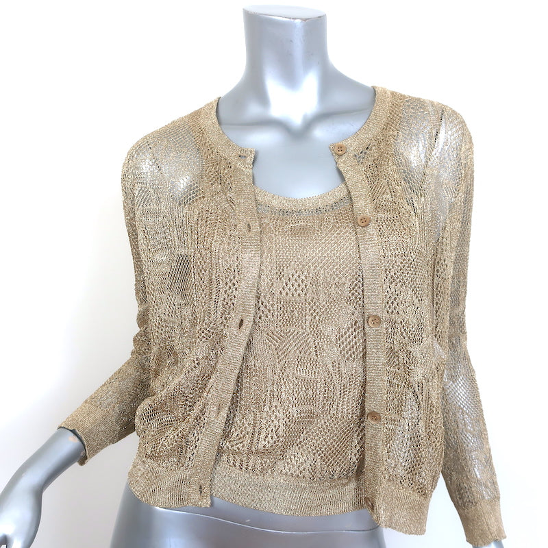 Christian Dior Metallic Knit Twinset Gold Size 40 Matching Top & Cardigan NEW