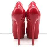 Pre-loved. Good condition. Black color transfer mark on exterior side of right platform and on tip of right toe. White scuff on interior side of left heel. Insoles are smudged and worn. Comes with dustbag. Retails for $945!