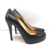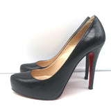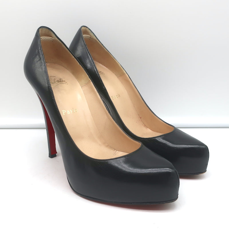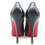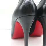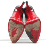 Pre-loved. Light wear along seams on tips of toes and on backs of heels. A few small scuffs on leather. Tiny nick in left heel. Red sole is starting to peel up on right heel. Insoles are smudged. Comes with dustbag. Retails for $795!