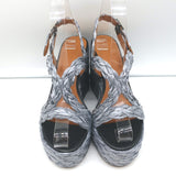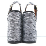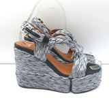 Clergerie Raffia Platform Wedge Sandals Ally Silver Size 36 Slingback Heels NEW