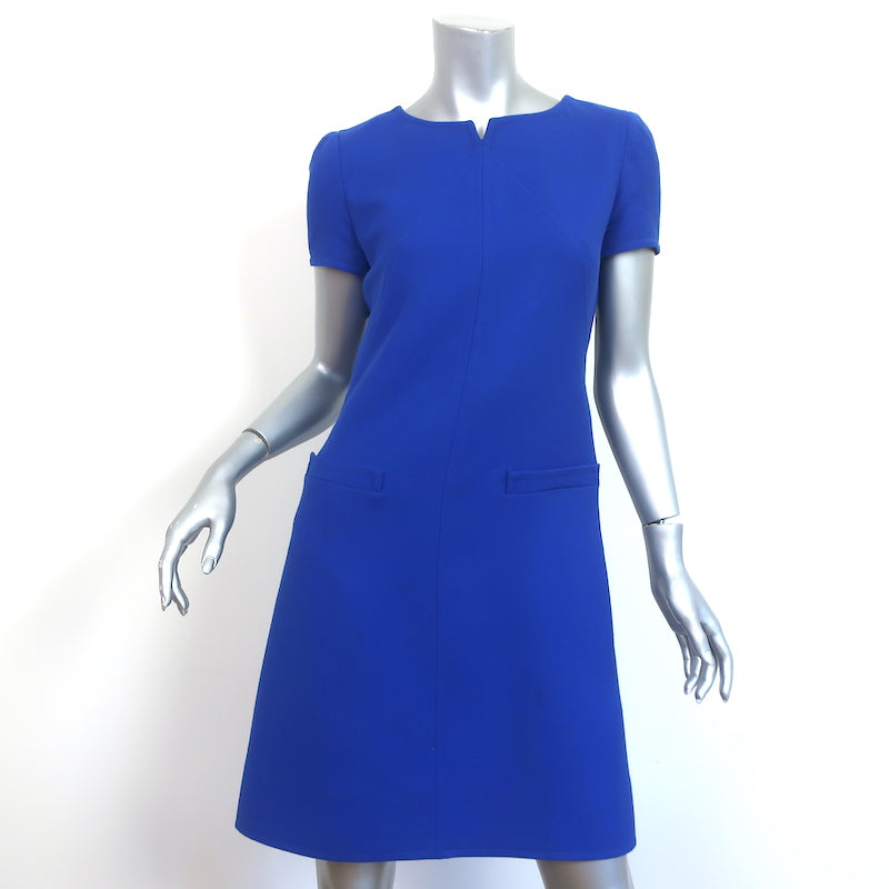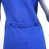 Courreges Short Sleeve Mini Shift Dress Blue Wool Size 8