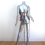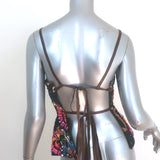 Cynthia Rowley Leather-Tie Sequined Top Black Floral Print Satin Size Small NEW