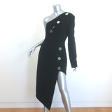 David Koma Mirror-Embellised One Shoulder Asymmetric Dress Black Size US 8/ UK 12