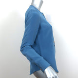 Derek Lam Half Placket Blouse Blue Silk Size 2 Long Sleeve Top