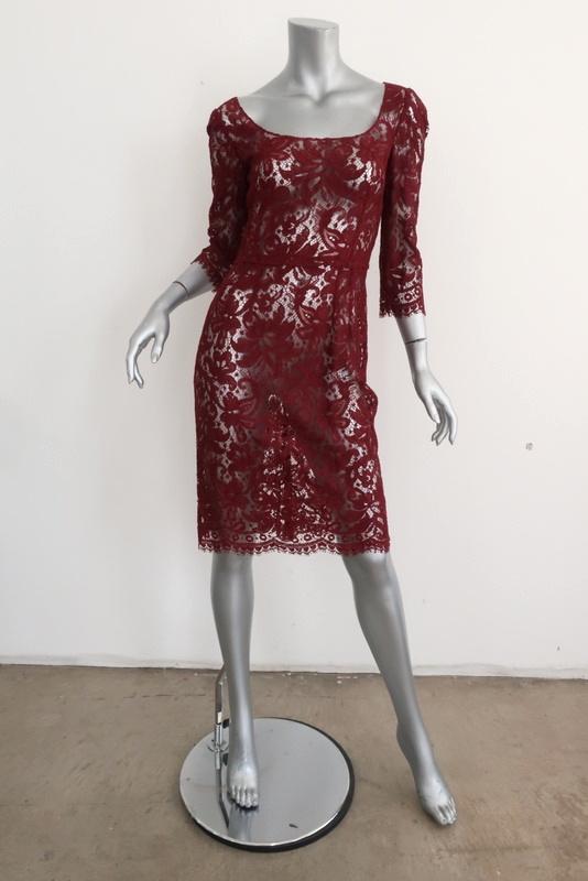 Dolce & Gabbana Lace Dress Dark Red Size 40 Scoop Neck 3/4 Sleeve