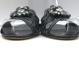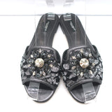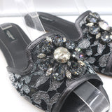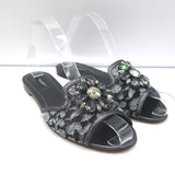 Dolce & Gabbana Sofia Crystal-Embellished Lace Slides Gunmetal Leather Size 38