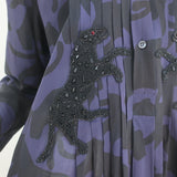 Dries Van Noten Beaded Panther Shirtdress Purple/Black Camouflage Cotton Size 34