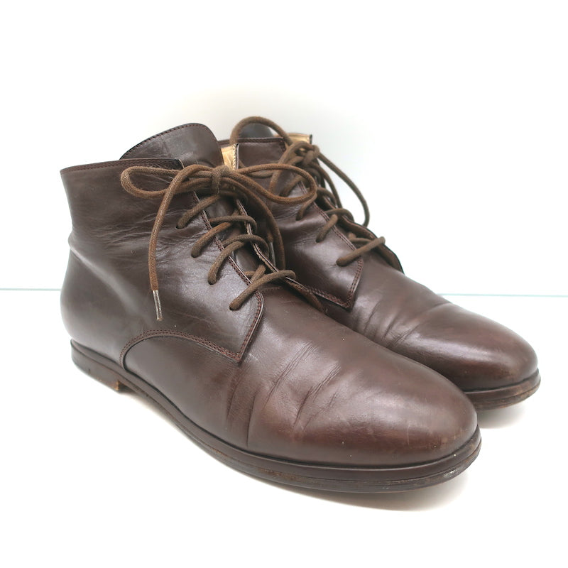 Condition details: Pre-loved with no major structural flaws. Expect wear on the tips of the toes and on the heels above the soles, small scuffs throughout, and natural creasing where the toes bend in walking. These signs add character and are typical of well-used leather pieces; photos show the current condition.