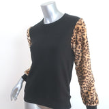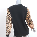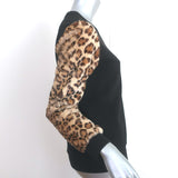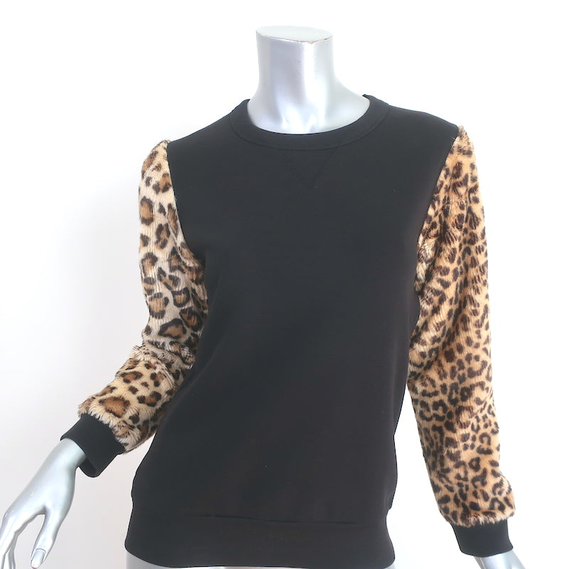 Dries Van Noten Leopard Faux Fur Sleeve Sweatshirt Black Cotton Size Small