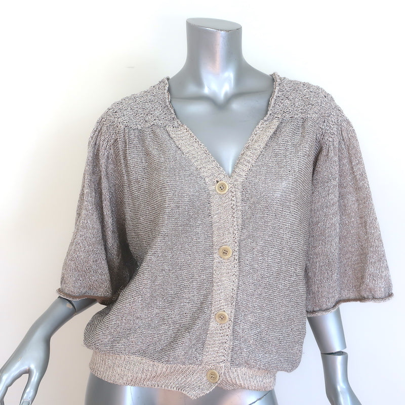 Dries Van Noten Metallic Short Sleeve Cardigan Beige/Gold Size Medium