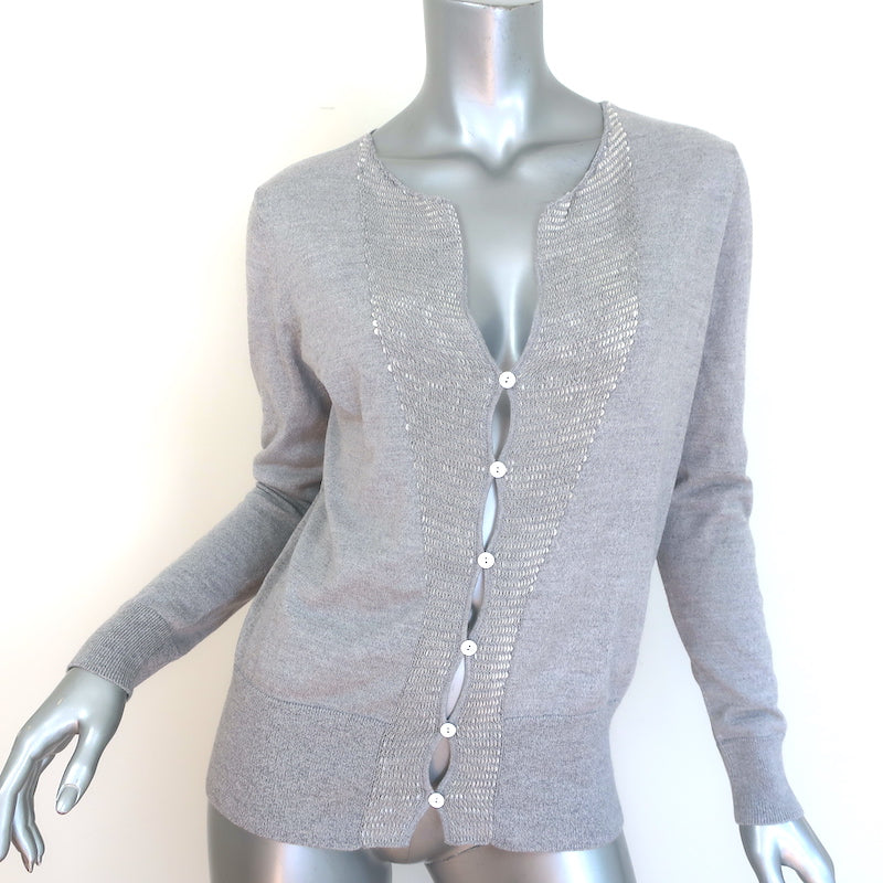 Dries Van Noten Sequin-Front Cardigan Heather Gray Wool-Cotton Size Small