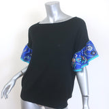 Emilio Pucci ruffled silk-sleeve knit top in black with a virgin wool body, size small is a refined wardrobe piece that brings Italian couture details into everyday elegance.