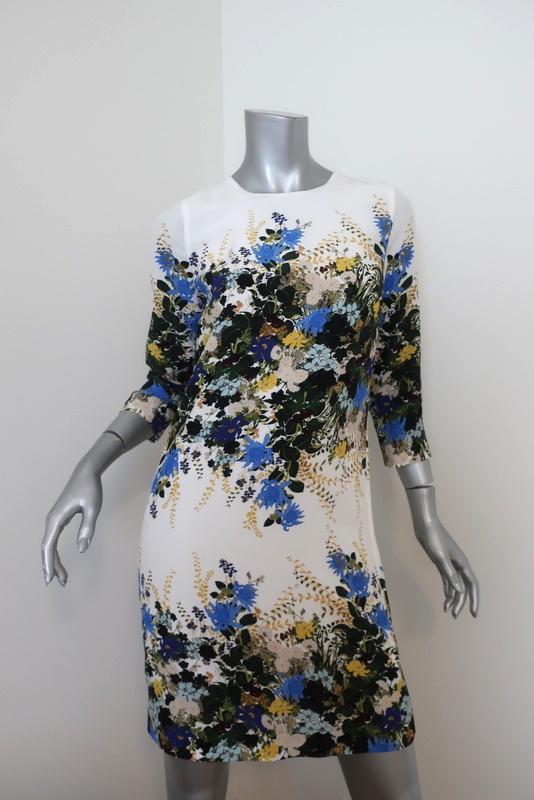 Erdem Emma Mini Shift Dress White/Multi Floral Print Silk Size 8 US 4 -