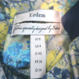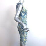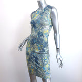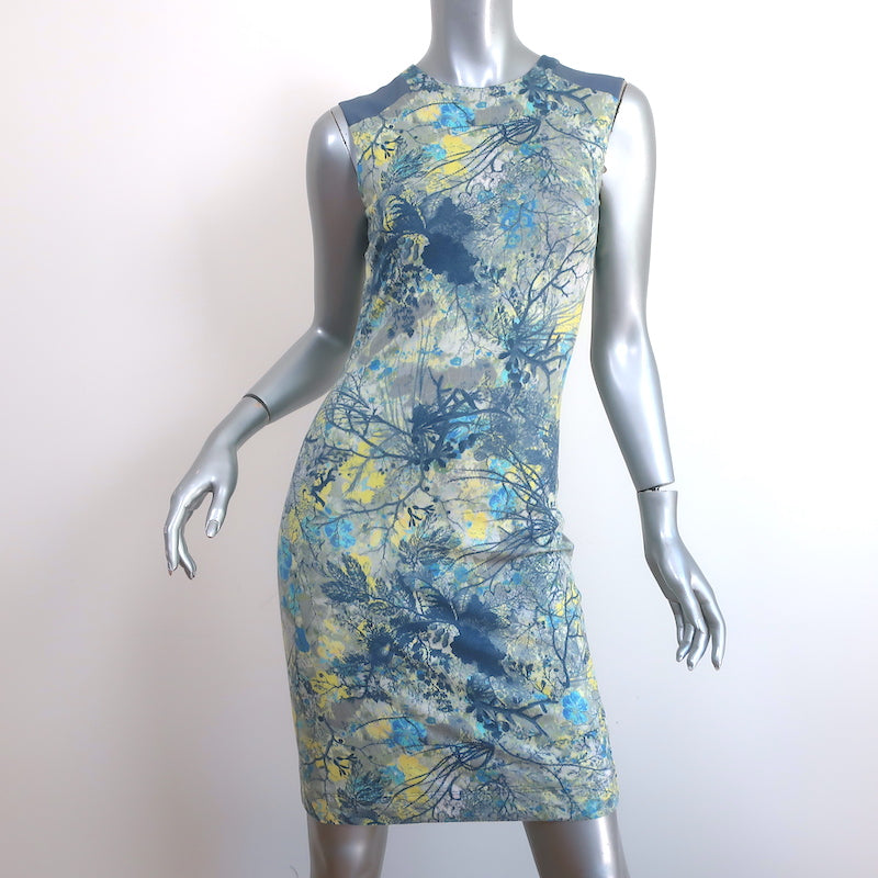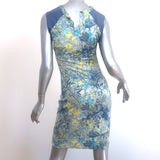 Erdem Sleeveless Mini Dress Gray/Blue Tree Print Stretch Jersey Size US 2