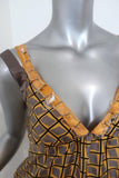 Etro Beaded Tank Yellow/Gray Printed Silk Twill Size 44 Crisscross-Strap Top -