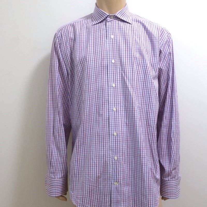 Etro Button Down Shirt Light Purple Checked Cotton Size 43