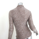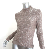 Fabiana Filippi Sequined Mock Neck Long Sleeve Top Beige/Silver Size 36 NEW