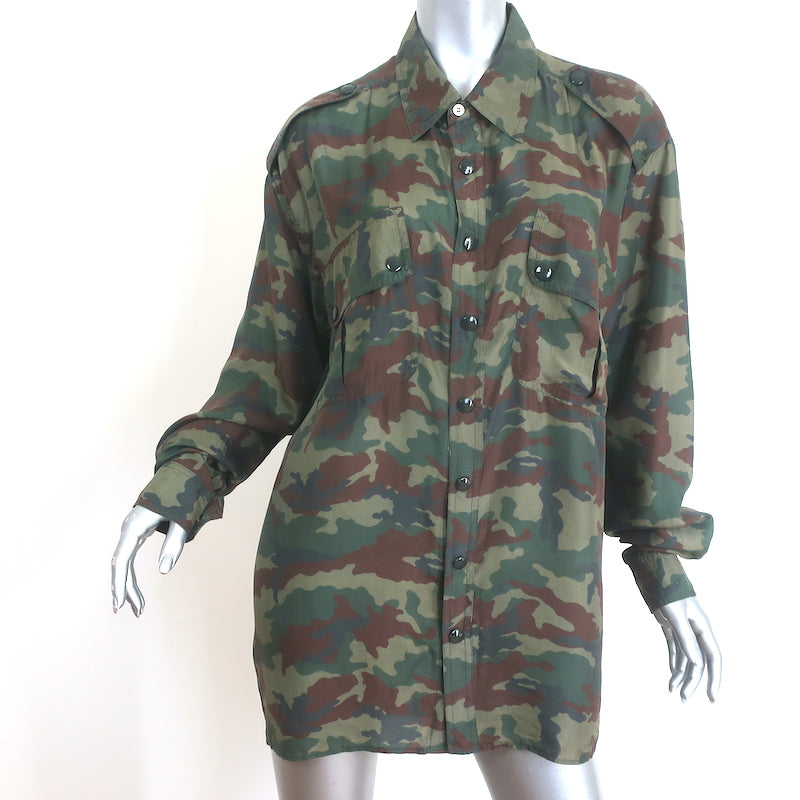 Faith Connexion Camouflage Print Shirt Army Green Size Medium Long Sleeve Blouse