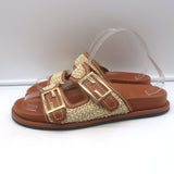 Fendi FF Feel Raffia Slide Sandals Natural/Brown Size 39