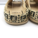 Fendi FF Feel Raffia Slide Sandals Natural/Brown Size 39