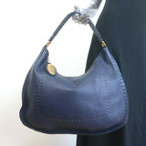 Fendi Selleria hobo in navy grained leather delivers timeless Italian craftsmanship in a roomy, refined silhouette perfect for everyday luxury.