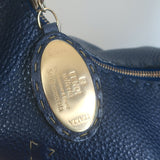 This pre-owned piece from Fendi’s Selleria line combines a large, shoulder-ready profile with rich navy grained leather and polished gold hardware. The Selleria name signals meticulous, hand-stitched edging and thoughtful construction—details collectors and long-time fans praise for their durability and elevated finish. Zipper closures and structured yet supple leather make it equally practical and elegant.