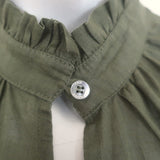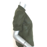 FRAME Deep V Ruffle Collar Top Fatigue Green Size Extra Small Puff Sleeve Blouse