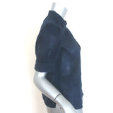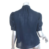 FRAME Deep V Ruffle Collar Top Navy Size Small Puff Sleeve Blouse