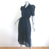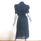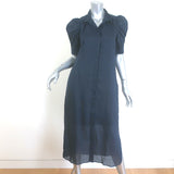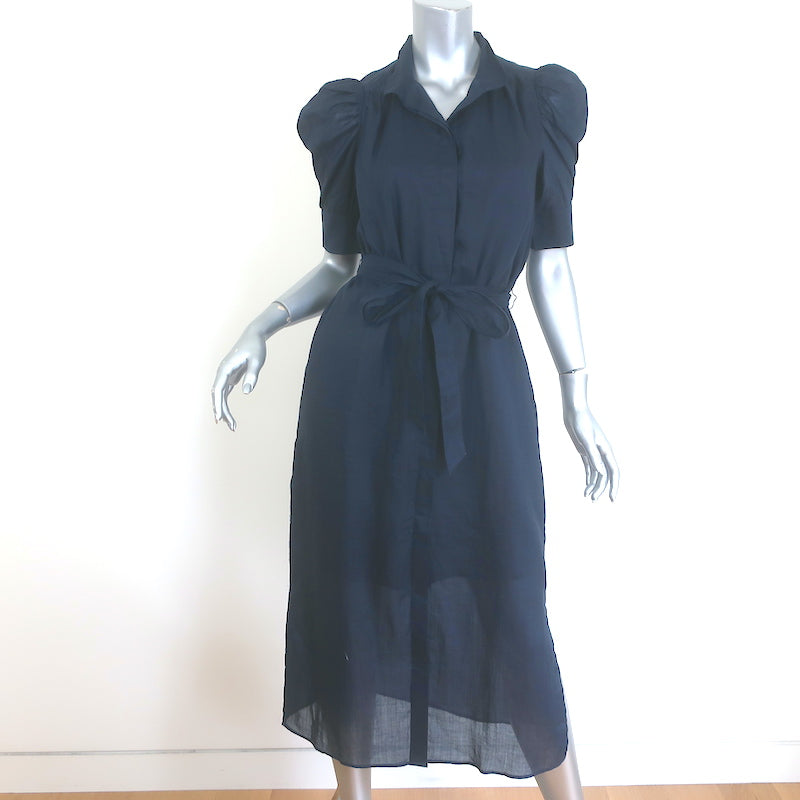 FRAME Gillian Ruched-Sleeve Midi Shirt Dress Navy Ramie Size Small